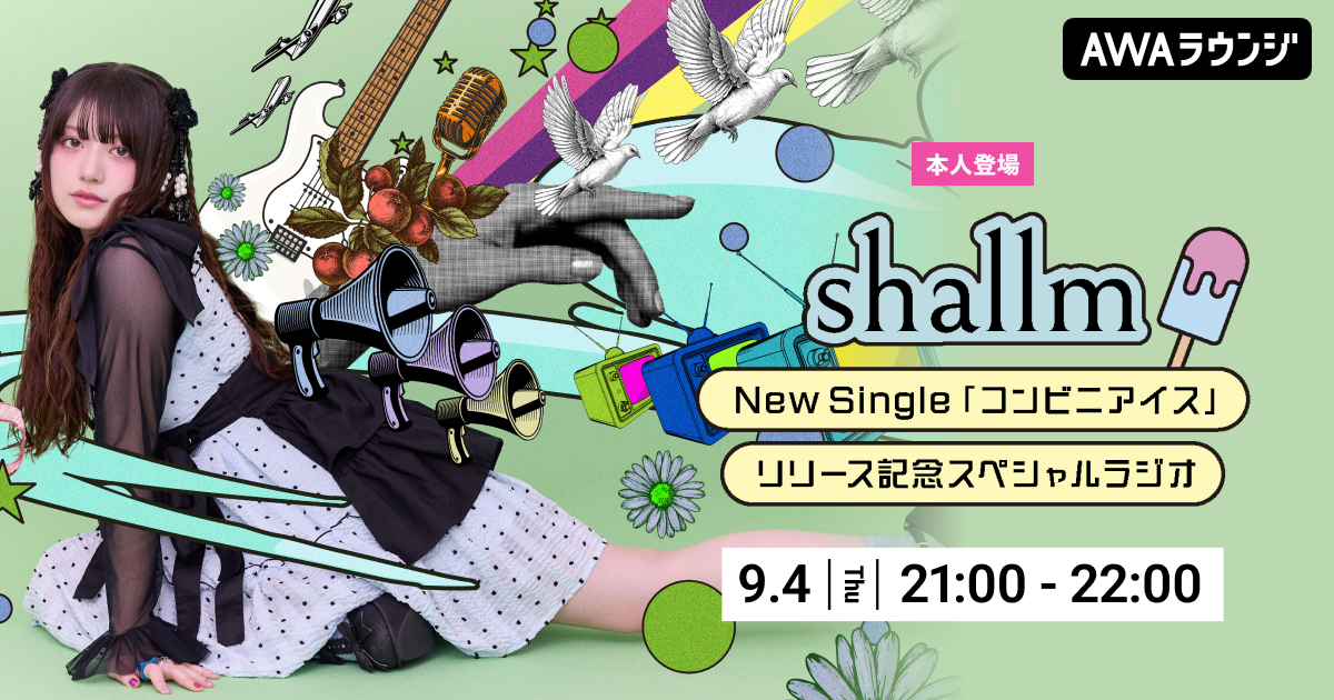 今回の番組は、shallm New Single「コンビニアイス」のリリースを記念して開催される、ラジオ形式のスペシャルプログラム。shallm本人による生トークはもちろん、番組リスナー向けのプレゼントキャンペーンなど、盛りだくさんの内容でお届けします。AWAラウンジはどなたでも無料で参加することができ、AWAアプリを事前にダウンロードしていれば、リクエストやアーティストとの交流など、よりお楽しみいただけます。AWAアプリをご準備の上、ぜひご参加ください。