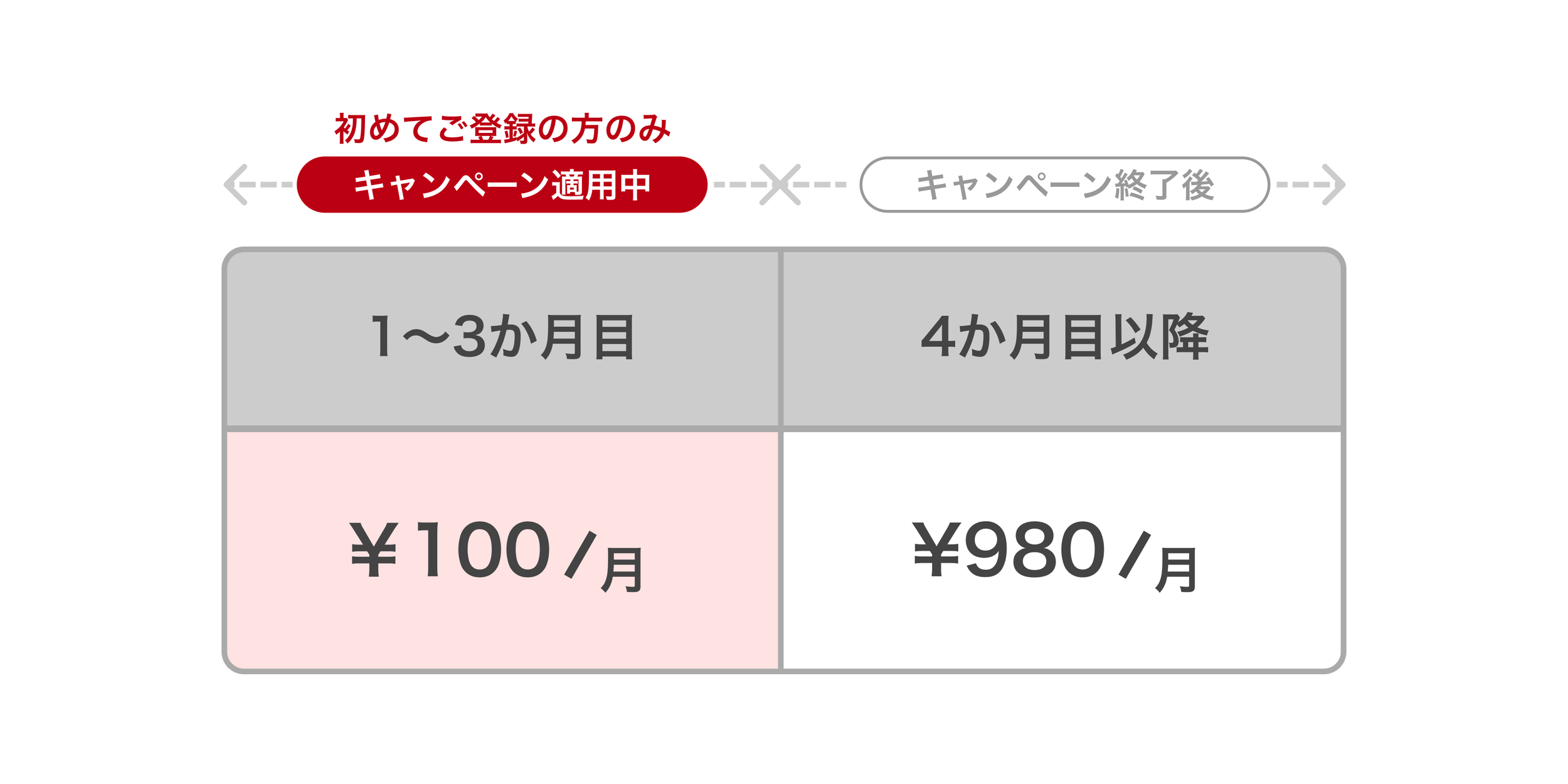 ※本キャンペーンは、初めてご利用の方が対象の初月無料トライアルは適用されません。