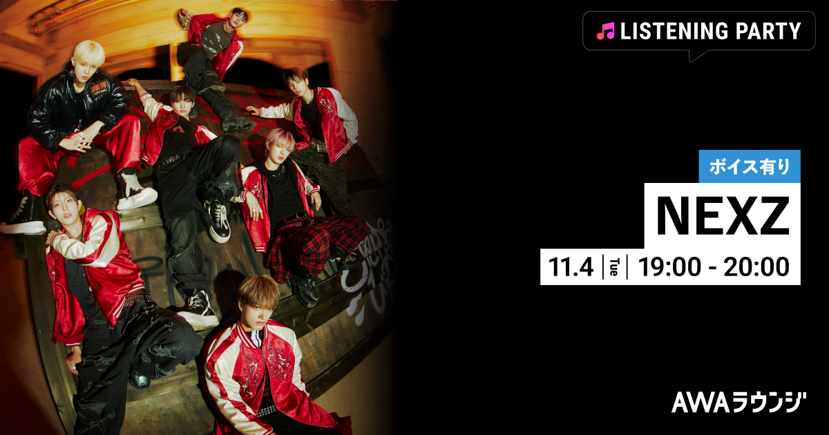2025年11月4日(火) 19:00~20:00の1時間に渡り、無料で誰でも参加できるオンライン空間「AWAラウンジ」で、NEXZのリリースパーティーを開催いたします。